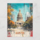 Esta postal de viaje, en estilo ilustracion digital, está inspirada en el Capitolio Estatal de Texas en Austin - EE.