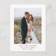 Estas minimalistas y elegantes postales de agradecimiento a tu boda presentan un moderno texto rojo oscuro sobre un fondo blanco, con tu foto personal. Un estilo sencillo y de diseño
