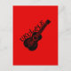 Dibujo negro con texto personalizado. Tarjetas postales de ukulele personalizadas con fondo rojo. Diseño original. Idea de regalo para amantes del ukulele.
