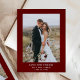 Postal Texto rojo oscuro y foto | Boda Gracias