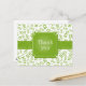 This card is cool way to help you say, "Thank you for coming to my 100th birthday party.” There are text templates to easily personalize the words in the center front. This design is a green and white random number pattern with the green milestone number 100 repeated in varied sizes and angles over a white background. There is a ticket shape in the center for your text.
