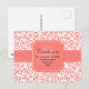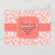 This design is a Coral and white random number pattern with the coral milestone number 50 repeated in varied sizes and angles over a white background. There is a ticket shape in the center for your text.