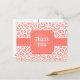 This design is a coral and white random number pattern with the coral milestone number 65 repeated in varied sizes and angles over a white background. There is a ticket shape in the center for your text.