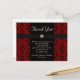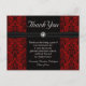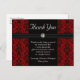 Customizable Thank You Card with elegant, pretty black and red damask print. Thank everyone for their heartfelt gifts and attendance to your special event, graduation ceremony or after-celebration. Dark red background with black damask pattern, black ribbon and faux diamond rhinestone jewel in the center.