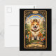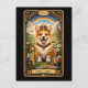 A whimsical and richly illustrated tarot card featuring an adorable crowned Corgi seated in an enchanted garden landscape beneath a rainbow, surrounded by crystals, candles, tarot cards, daisies, and butterflies before a fairy tale castle.