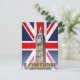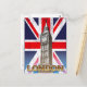 Esta postal cuenta con un ilustracion de tinta vintage del Big Ben, conocido como The Elizabeth Tower, que es uno de los más famosos monumentos británicos con Union Jack en el fondo.