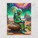 Un astronauta se sienta en una roca en la posición de pensador en un planeta único en algún lugar del exterior generado por IA