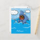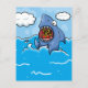 Con un impresionante personalizado, el Gran Tiburón Blanco, con un regalo de cumpleaños rojo y amarillo equilibrado en su lengua en un mar azul turbulento.