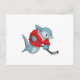 Postal Tiburón en hockey sobre hielo con palo de hockey s