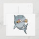 Postal Tiburón jugando ajedrez con la pieza Rey