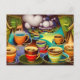 La magnífica postal surrealista de arte digital generada por IA presenta tazas coloridas llenas de café.