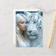 Mujer rubia bonito con un tigre blanco místico. El arte de fantasía etéreo Ai.