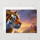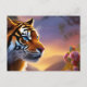 Magnífico paisaje montañoso del tigre de ojos azules y flores rosadas AI generó arte de IA creado por minx267