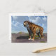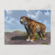 Verdad, hermoso, retrato de un tigre del diente del sable (fatalis de Smilodon) que pasa por alto un paleo Great Plains encima de una colina en el borde de su hábitat del bosque.
