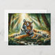 Postal Tigres en una exuberante selva Pintura en acuarela