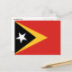 Bandera de Timor Oriental. En 2002 se adoptó la bandera de Timor Oriental. Es lo mismo que la bandera de 1975. A la medianoche del 19 de mayo, y durante los primeros momentos del Día de la Independencia, el 20 de mayo de 2002, se bajó la bandera de las Naciones Unidas y se izó la bandera de un Timor Oriental independiente. Según la sección 15 de la parte I de la Constitución de la República Democrática de Timor Oriental: "La bandera nacional es rectangular y está formada por dos triángulos isosceles, cuyas bases se superponen. Un triángulo es negro y su altura es igual a un tercio de la longitud superpuesta al triángulo amarillo, cuya altura es igual a la mitad de la longitud de la bandera. En el centro del triángulo negro hay una estrella blanca de cinco extremos, lo que significa la luz que guía. La estrella blanca tiene uno de sus extremos girado hacia el lado izquierdo de la bandera. La parte restante de la bandera es roja."