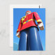 Postal con foto de la estatua del soldado de estaño más grande del mundo, de 9.8 metros de altura.