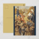 Esta postal vintage y patriótica presenta una ilustración del Tío Sam quitándose el sombrero mientras un grupo de niños llevando la bandera estadounidense marchan por delante.