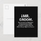 Tarjeta postal de tipografía de cita divertida para novio diseñada por Nisha Prabhu. ¡Prepárate para atar el nudo con esta divertida y original tarjeta postal que incluye una cita graciosa de novio! Perfecta para enviar a tus invitados de boda o para agregar un toque de diversión a tu día especial.