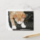El naranja y el gato blanco de tabby hace su correspondencia a la antigua, en una vieja máquina de escribir. Buen texto podría ser que te estoy escribiendo, por favor, escríbeme etc
