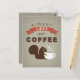 La ardilla disfruta de una taza de café caliente al vapor. "Todo lo que necesitas es amor y café". Una postal de un amante del café genial que es personalizable para el correo personal o de negocios. El lado de escritura de esta postal presenta un patrón de granos de café. Visite el Doodle World de Jenn para ver productos aún más originales con esta ardilla linda.