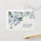 La elegante postal RSVP de boda de invierno con flores de color gris y azul glacial, presenta flores de flores de color gris y hielo en tonos rojizos. Comuníquese conmigo para obtener ayuda sobre la personalización o si necesita cualquier otro producto con este diseño.