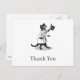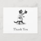 Esta postal de Gracias personalizado tiene espacio para tu frente y espalda de texto personal y un lapicero blanco y negro vintage y un dibujo de tinta de un gato que usa gafas y un abrigo que tira su sombrero superior.