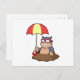 Postal Topo bajo la lluvia con paraguas