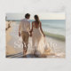 Un diseño moderno y sencillo con tipografía decorativa y un guión elegante de caligrafía, junto con una foto completa en el frente y una más pequeña en la parte posterior de un fondo rosa rubor. Personalizar fácilmente sus detalles personalizados de elección. Una buena manera de anunciar a su boda, y es ideal para cualquier boda temática.