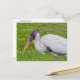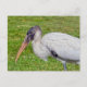 "Tormenta de madera juvenil" por Catherine Sherman. Una joven cigüeña de madera visita un parque de Florida, donde los pescadores están probando su suerte. La cigüeña de madera (Mycteria americana) es un gran ave americana en la familia cigüeña Ciconiidae. Anteriormente se llamaba "ibis de madera", aunque no es un ibis. Se encuentra en hábitats subtropicales y tropicales de las Américas, incluido el Caribe. El plumaje es en su mayoría blanco, excepto la cola y algunas plumas de ala, que son negras con un lustre verdoso-violáceo. El menor difiere del adulto, pues el primero tiene una cabeza de plumas y una cuenta amarilla, en comparación con la cuenta de adulto negro. Los sexos son similares.