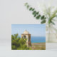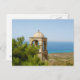 Detalle del campanario con pinos y vistas al mar en una isla mediterránea