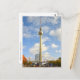 "Torre de Televisión, Berlín, Alemania" por Catherine Sherman. En Berlín, Alemania, una gran torre de televisión se eleva de manera prominente, con un telón de fondo parcialmente nublado, lo que crea un impresionante horizonte. Debajo, un bullicioso espacio público está salpicado de gente y flanqueado por árboles de colores otoñales. La Fernsehturm (torre de televisión) en el centro de Berlín, Alemania, fue construida entre 1965 y 1969 por el gobierno de la República Democrática Alemana, o Alemania del Este, como una instalación de radiodifusión funcional y símbolo del poder comunista. Sigue siendo un punto de referencia desde su ubicación junto a Alexanderplatz, en el Barrio Marien de la ciudad, parte del distrito de Mitte, visible en la mayoría de los distritos suburbanos de Berlín. Es la estructura más alta de Alemania a 1.207 pies (368 metros) incluyendo antena y la tercera estructura más alta