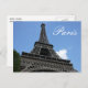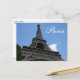 Fotografía desde el suelo mirando hacia la Torre Eiffel en París, Francia, contra el cielo azul.