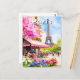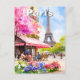 Una hermosa tarjeta postal de viaje en acuarela que captura la esencia de París en flor. Esta vibrante ilustración presenta la Torre Eiffel, un encantador café de calle y flores coloridas. Perfecto para viajar, coleccionar o enviar notas a amigos. Una hermosa impresión de arte fino impresionista que evoca el romance de la Ciudad del Amor.