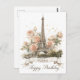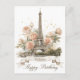 Un diseño de tarjeta de felicitación elegante y romántico que presenta una hermosa ilustración de estilo acuarela de la Torre Eiffel. El emblemático monumento parisino está rodeado de suaves rosas pastel rosa y crema y acentuado con delicadas motas doradas. Personalice con su propio texto en el banner de la cinta en la parte inferior.