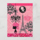 Postal Torre Eiffel Francesa, Cachorro y Damasco Elegante