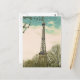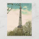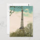 Esta es una postal de la famosa Torre Eiffel en un estilo vintage. La postal cuenta con la emblemática Torre, los árboles y el gran cielo.
