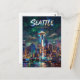 El horizonte de Seattle es un icono del Pacífico Noroeste, presidido por el disco futurista de la Space Needle. Debajo de ella, la ciudad brilla contra el telón de fondo de la bahía de Elliott y la silueta distante y fantasmal del Monte Rainier.
