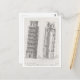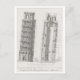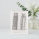 Esta postal es una reproducción de un dibujo/diagrama arquitectónico vintage de la Torre Inclinada de Pisa en Italia.