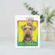 Celebra un cumpleaños con esta fantástica tarjeta de saludo de perro Airedale. Con una torta balanceada en la cabeza, el diseño hará sonreír y reír. BTW, Este diseño tiene varias versiones, con diferentes colores de fondo. También hay una invitación a una versión Fiesta.