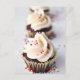 Fotografía moderna de tres quequitos seguidos. Cada pastel de chocolate tiene deliciosas heladas de vainilla y arcoíris.