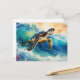 Postal Tortuga de mar cabalgando una acuarela de ola vibr