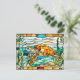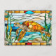 Postal Tortuga Marina de Vidrio Pintado Nadando en el Océ
