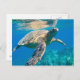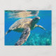 Fotografía submarina de una tortuga marina nadando en aguas cristalinas justo debajo de la superficie.