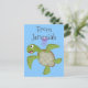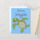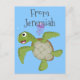 Postal Tortuga marina verde suave feliz ilustracion perso
