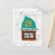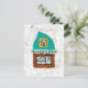 Una divertida tortuga gruñón sobre piezas de color marrón y turquesa, unida con una franja de flores turquesas. Todas las piezas se sientan sobre un fondo blanco texturado.