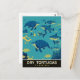 Tortugas marinas nadando bajo el agua. Parque nacional de Tortugas Secas, Florida. Tarjeta postal de viaje en azul.