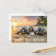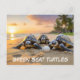 Postal Tortugas marinas verdes en la playa con huevo roto