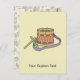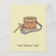 Icono de tambor de juguete con correa y tambores en paleta de color vintage. Texto personalizado. Patrón sin foco en la parte trasera.