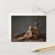 Vida fija con molino de café antiguo y muñeca unida trabajando en el molino